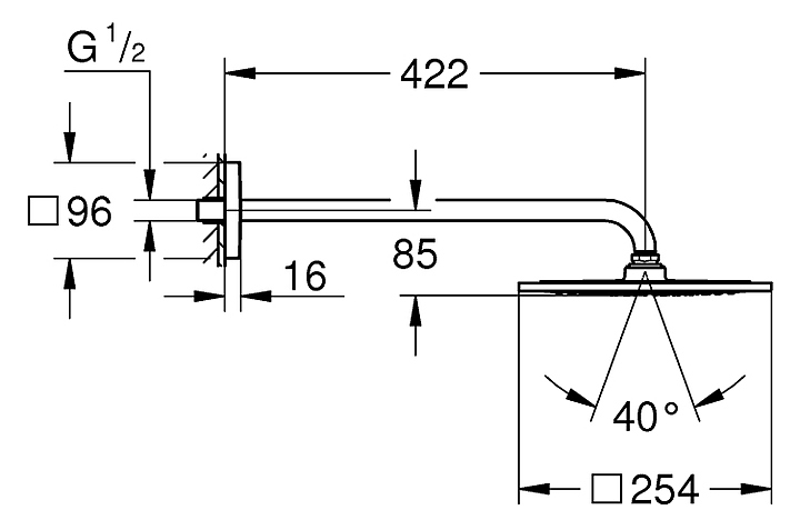 Душ верхний с кронштейном Grohe Rainshower F-series 10″ 254 26259000