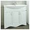 Тумба под раковину СаНта Верона 95 дополнит интерьер ванной комнаты. Модель оснащена 3 распашными дверцами. Корпус выполнен из влагостойкой ЛДСП, фасад - из МДФ и покрыт пленкой для защиты поверхности от внешних воздействий. Тумба используется вместе с раковиной Монро 95. В комплект поставки входят 3 ручки. Особенности: