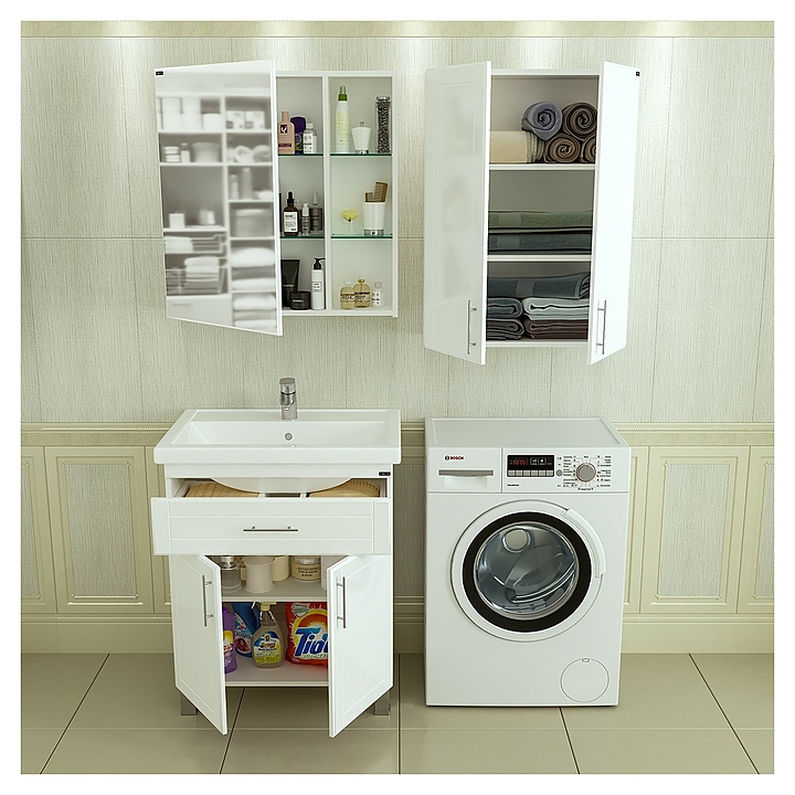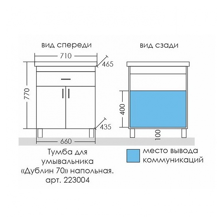 Тумба под раковину СаНта Дублин 70 дополнит интерьер ванной комнаты. Модель оснащена 2 распашными дверцами, выдвижным ящиком и ножками, защищающими конструкцию от воздействия влаги в случае намокания пола. Корпус выполнен из влагостойкой ЛДСП, фасад - из МДФ и покрыт пленкой для защиты поверхности от внешних воздействий. Тумба используется вместе с раковиной Фостер 70. В комплект поставки входят 3 ручки и 4 ножки. Особенности:
