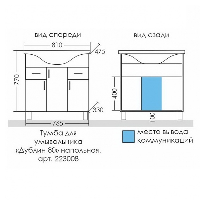 Тумба под раковину СаНта Дублин 80 напольная, 2 ящика