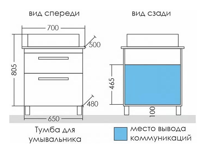 Тумба под раковину СаНта Нептун 70 со столешницей, напольная