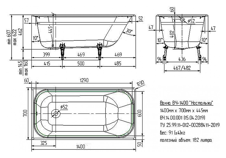 Ванна Универсал Ностальжи 140x70 см, чугун