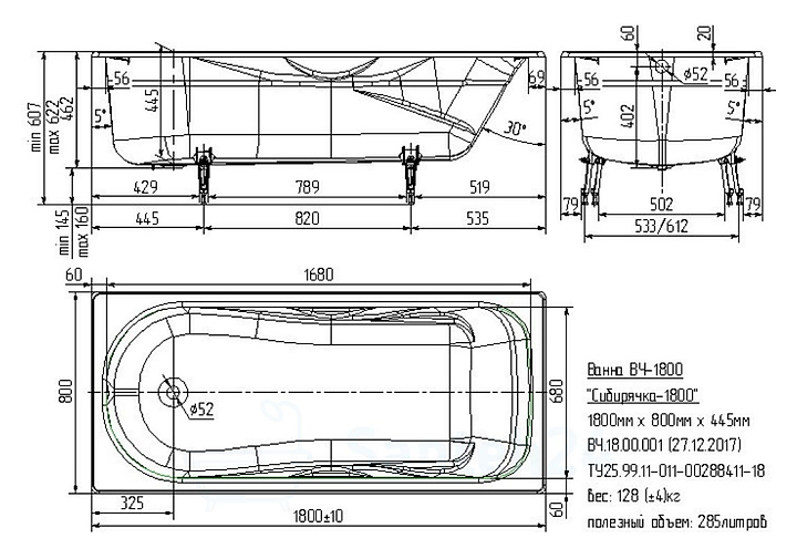 Ванна Универсал Сибирячка 180x80 см, чугун