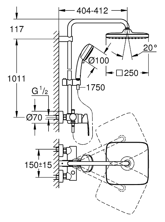 Душевая система со смесителем однорычажным Grohe Tempesta Cosmopolitan System 250 Cube 26692000 предназначена для использования в ванных помещениях для подачи горячей и холодной воды. Модели коллекции Tempesta отличаются необычным дизайном и интересным сочетанием простых изгибов и обтекаемых форм. Известковый налет на душевым поверхностях с легкостью удаляется благодаря технологии SpeedClean, технология DreamSpray обеспечивает одинаковый поток воды из каждой душевой форсунки, а технология EcoJoy ограничивает расхода воды. Изделие выполнено из высококачественной латуни, отличающейся прочностью, долговечностью и устойчивостью к перепадам температур, а также имеет покрытие StarLight, устойчивое к царапинам и обеспечивающее блеск на много лет. Комплектация: