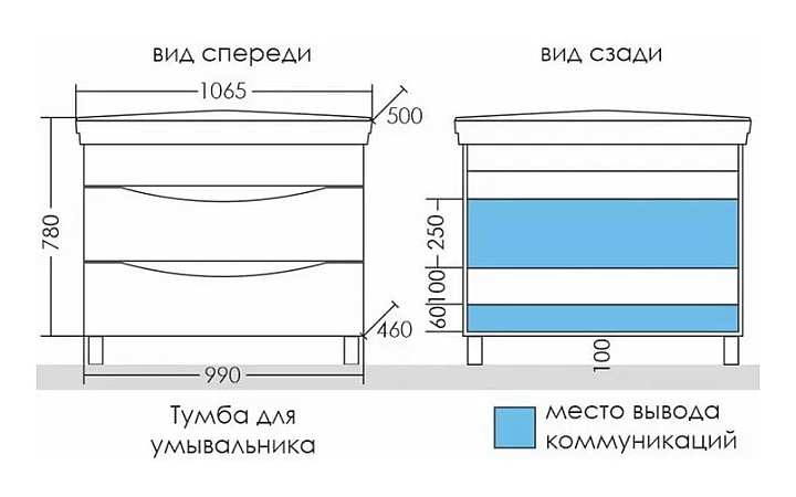 Тумба под раковину СаНта Сатурн 105 напольная, 2 ящика
