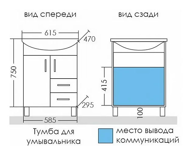 Тумба под раковину СаНта Сити 60 напольная, 2 ящика