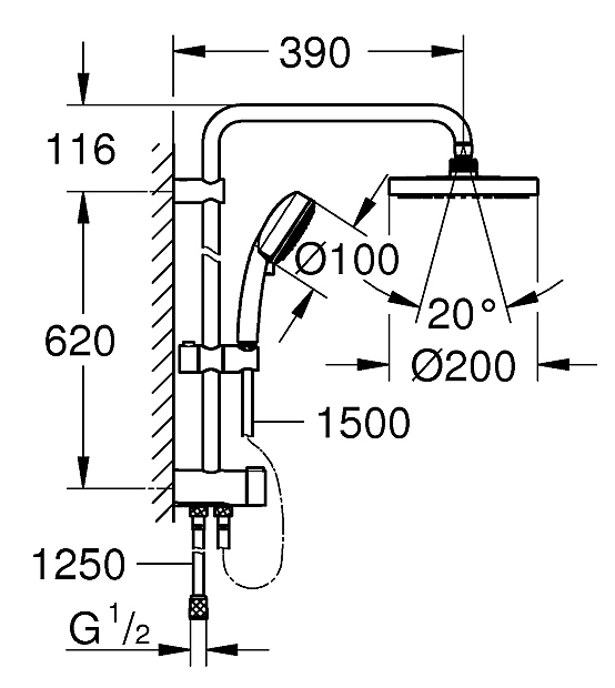 Душевая система FLEX с переключателем Grohe Tempesta Cosmopolitan System 200 27394002