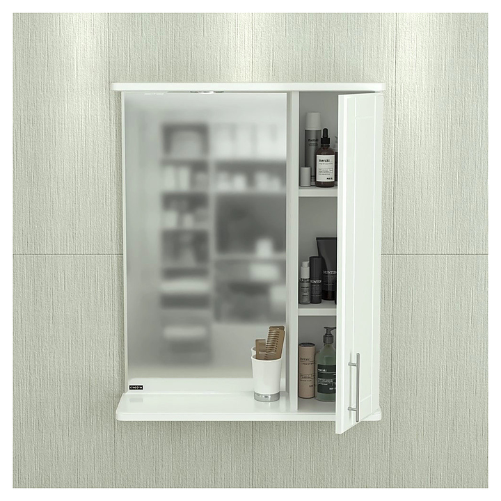 Зеркальный шкаф СаНта Дублин 60 дополнит интерьер ванной комнаты. За счет подвесной конструкции изделие экономит пространство в ванной комнате и облегчает уборку. Модель оснащена распашной дверцей, 2 полками за дверцей, открытой полкой в нижней части шкафа, встроенным светильником и розеткой/выключателем. Особенности: