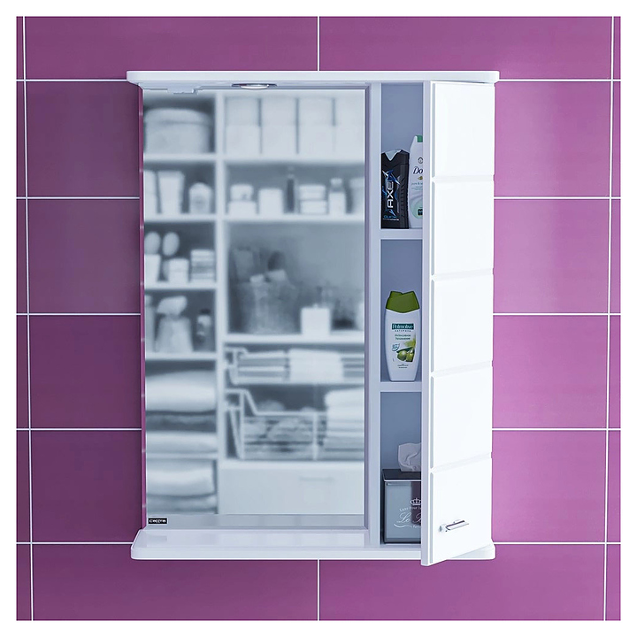 Зеркальный шкаф СаНта Омега 60 дополнит интерьер ванной комнаты. За счет подвесной конструкции изделие экономит пространство в ванной комнате и облегчает уборку. Модель оснащена распашной дверцей, 2 полками за дверцей, открытой полкой в нижней части шкафа, светильником, розеткой и выключателем. Корпус выполнен из влагостойкой ЛДСП и покрыт пленкой для защиты от внешних воздействий, фасад - из МДФ. Особенности: