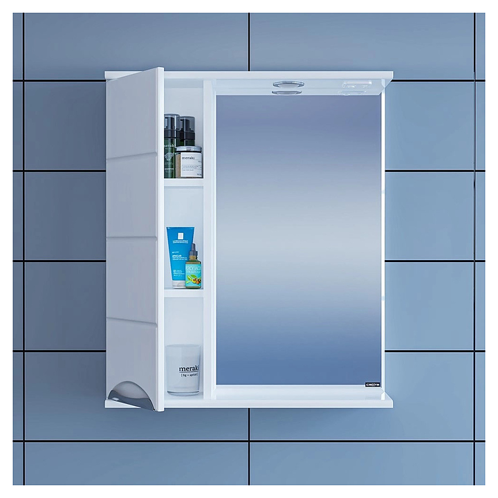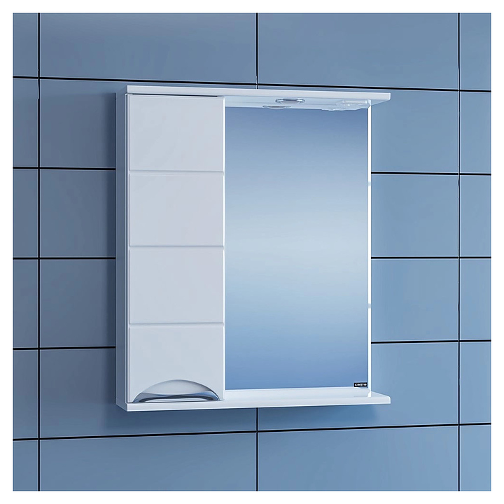 Зеркальный шкаф СаНта Родос 60 дополнит интерьер ванной комнаты. За счет подвесной конструкции изделие экономит пространство в ванной комнате и облегчает уборку. Модель оснащена распашной дверцей, 2 полками в отделении, открытой полкой в нижней части шкафа, светильником, розеткой и выключателем. Изделие выполнено из МДФ и покрыто пленкой для защиты от внешних воздействий. В комплект поставки входит хромированная ручка. Особенности: