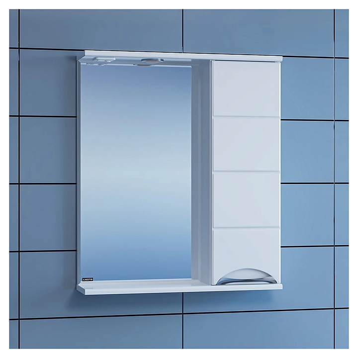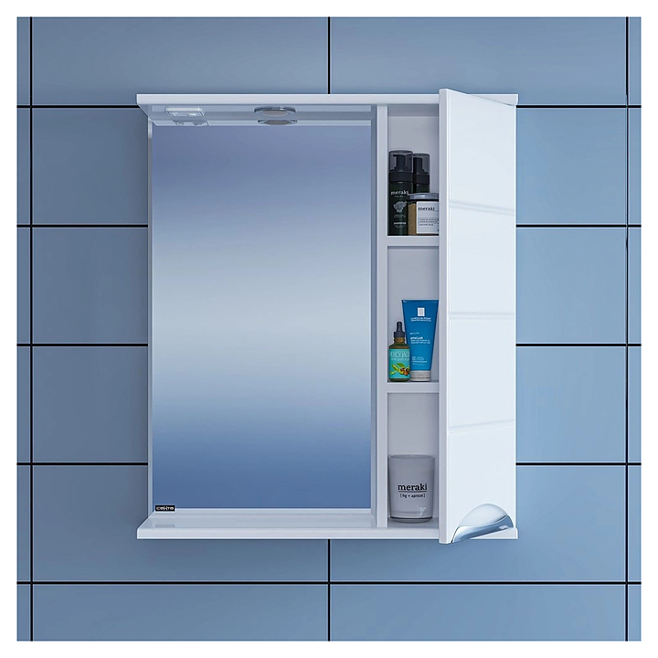 Зеркальный шкаф СаНта Родос 60 дополнит интерьер ванной комнаты. За счет подвесной конструкции изделие экономит пространство в ванной комнате и облегчает уборку. Модель оснащена распашной дверцей, 2 полками в отделении, открытой полкой в нижней части шкафа, светильником, розеткой и выключателем. Изделие выполнено из МДФ и покрыто пленкой для защиты от внешних воздействий. В комплект поставки входит хромированная ручка. Особенности:
