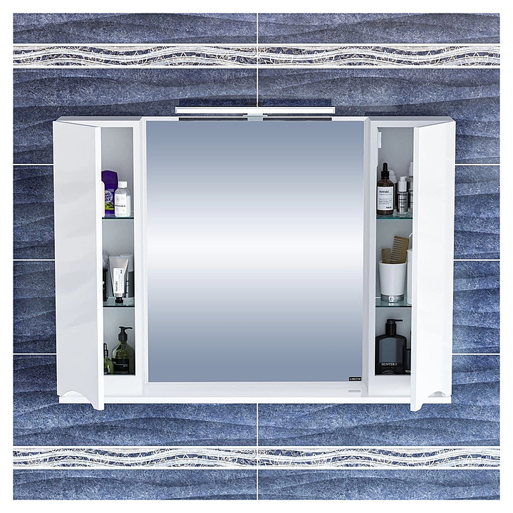 Зеркальный шкаф СаНта Сатурн 100 дополнит интерьер ванной комнаты. За счет подвесной конструкции изделие экономит пространство в ванной комнате и облегчает уборку. Модель оснащена 2 распашными дверцами, 2 стеклянными полками в каждой секции, открытой полкой в нижней части шкафа, светильником, розеткой и выключателем. Корпус выполнен из влагостойкой ЛДСП, фасад - из МДФ и покрыто эмалью для защиты от внешних воздействий. Особенности: