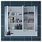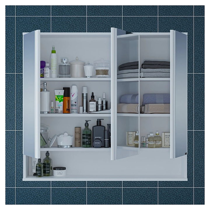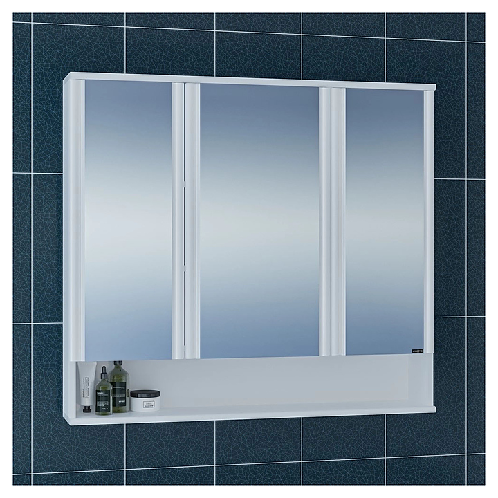 Зеркальный шкаф СаНта Вегас 100 дополнит интерьер ванной комнаты. За счет подвесной конструкции изделие не занимает много места, что позволяет экономить пространство, а также облегчает уборку. Модель оснащена 3 распашными дверцами, 4 полками в секциях и открытой полкой в нижней части шкафа. Корпус выполнен из влагостойкой ЛДСП, фасад - из МДФ и покрыт пленкой для защиты от внешних воздействий. Особенности: