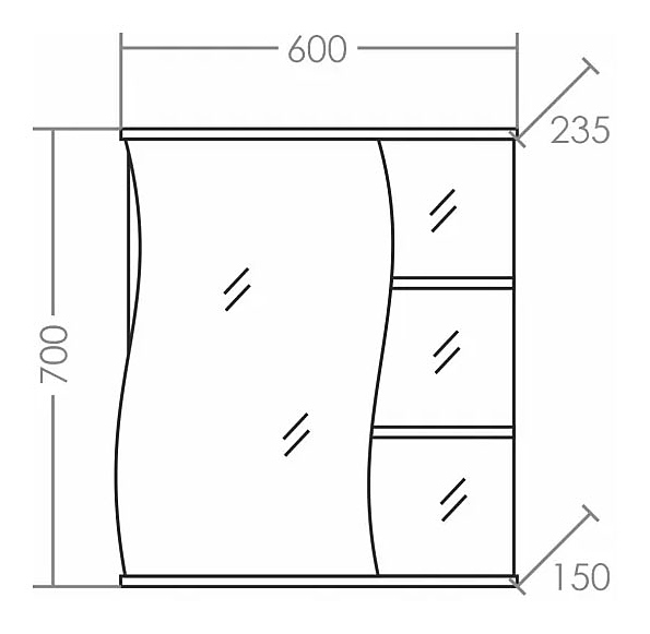 Шкаф зеркальный СаНта Волна 60 левый, со светильником