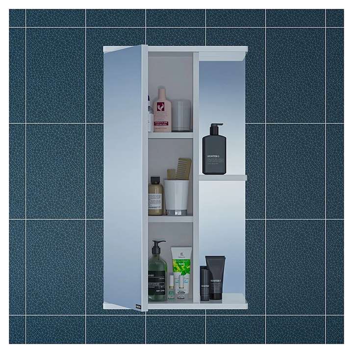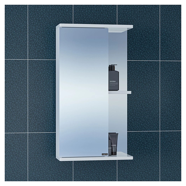 Зеркальный шкаф СаНта Ника 40 дополнит интерьер ванной комнаты. За счет подвесной конструкции изделие не занимает много места, что позволяет экономить пространство, а также облегчает уборку. Модель оснащена распашной дверцей, 2 полками в отделении и открытыми полками в боковой части шкафа. По периметру зеркало обработано фацетом – декоративными скошенными гранями. Изделие выполнено из ЛДСП. Особенности: