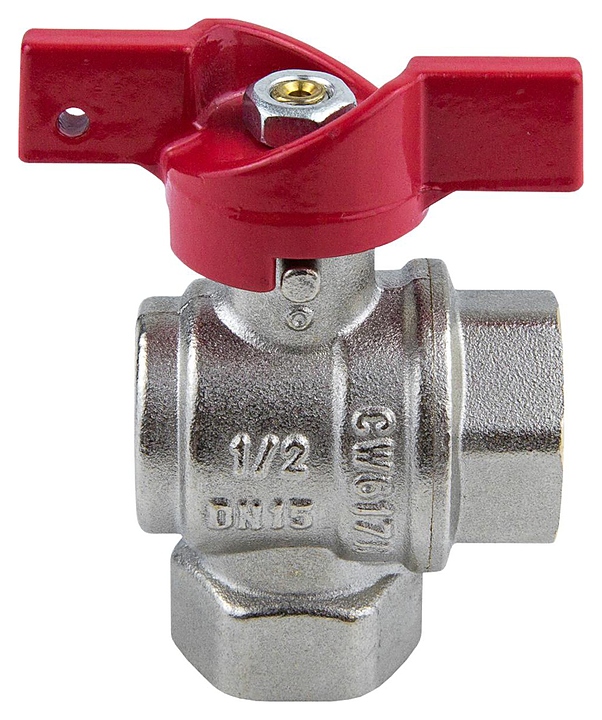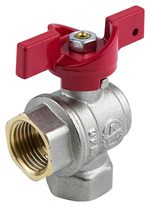 Кран шаровой угловой Aquasfera 007-7400, ДУ 15, PN 4 МПа, 1/2"ВР - 1/2"ВР, 1008-01 EURO полнопроходной латунный с бабочкой