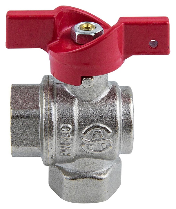 Полнопроходной угловой шаровой кран Aquasfera 007-7400 используется в качестве запорной арматуры в системах пожаротушения, отопления, холодного и горячего водоснабжения в хозяйственно-питьевых сетях и промышленных технологических трубопроводах. Модель оснащена рукояткой-бабочкой с отверстием для пломбирования. Корпус, шар, шток и гайка сальника выполнены из высококачественной горячепрессованной латуни (CW617N), рукоятка – из алюминиевого сплава с покрытием порошковой краской, гайка – из конструкционной стали (S235) с цинковым покрытием, уплотнение шара, сальника и антифрикционное – из политетрафторэтилена (PTFE), уплотнение штока – из этиленпропилендиен мономера (EPDM), корпус с никелевым покрытием, шар с хромированным покрытием. Модель поставляется в собранном виде в положении полного открытия. Особенности: