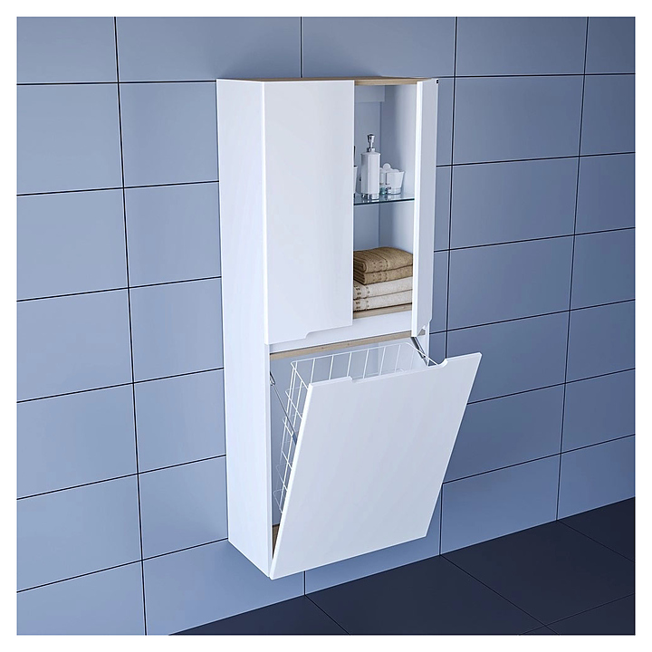 Шкаф-пенал СаНта Лондон 60 подвесной, с бельевой корзиной