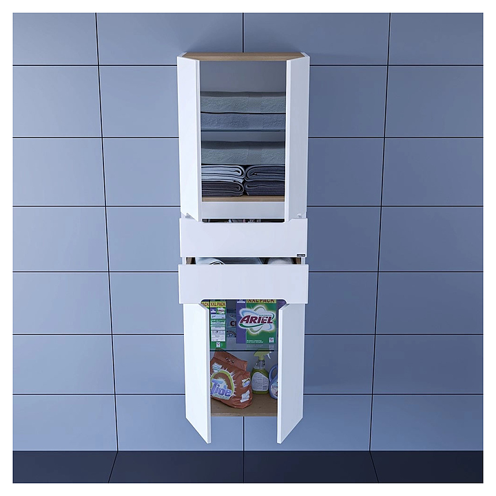 Шкаф-пенал СаНта Лондон 50 дополнит интерьер ванной комнаты. За счет подвесной конструкции изделие не занимает много места, что позволяет экономить пространство, а также облегчает уборку. Модель оснащена 4 распашными дверцами, 2 стеклянными полками и 2 выдвижными ящиками. Корпус выполнен из влагостойкой ЛДСП, фасад - из МДФ и покрыт ПВХ-пленкой для защиты от внешних воздействий. Особенности: