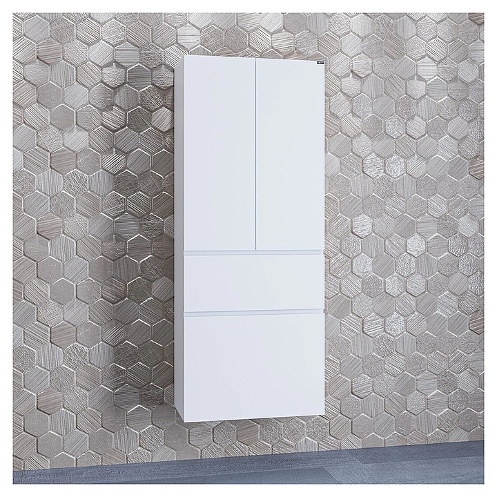Шкаф-пенал СаНта Марс 60 дополнит интерьер ванной комнаты. За счет подвесной конструкции изделие не занимает много места, что позволяет экономить пространство, а также облегчает уборку. Модель оснащена 2 распашными дверцами, 2 полками и 2 выдвижными ящиками. Корпус выполнен из влагостойкой ЛДСП, фасад - из МДФ и покрыты эмалью для защиты от внешних воздействий. В комплект поставки входят 2 стеклянные полки. Особенности:
