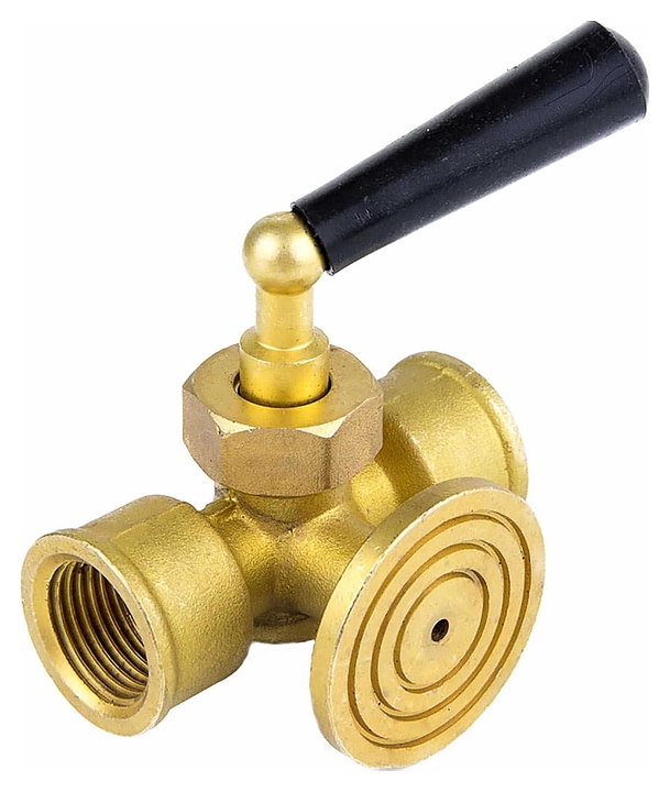 Трехходовой кран Aquasfera 012-0097 предназначен для подключения рабочего манометра к системам отопления, холодного и горячего водоснабжения в хозяйственно-питьевых сетях и промышленных технологических трубопроводах. Модель оснащена фланцем для манометра и рукояткой. Корпус, запорная пробка, фланец, рукоятка, прижимные гайка и кольца выполнены из высококачественной горячепрессованной латуни (CW617N), уплотнение – из политетрафторэтилена (PTFE), покрытие рукоятки – из АБС-пластика. Особенности: