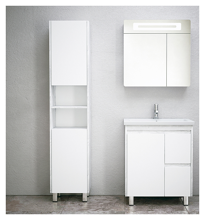 Шкаф-пенал Corozo Остин 40 SD-00000550 выполнен в современном, лаконичном стиле и отлично дополнит интерьер любой ванной комнаты. Модель оснащена 2 открытыми полками и распашными фасад-дверцами, внутри которых находятся полки, где удобно разместить все необходимые личные принадлежности. Напольная конструкция обеспечивает легкий монтаж и не требует специального ремонта в помещении. Дополнительные характеристики: