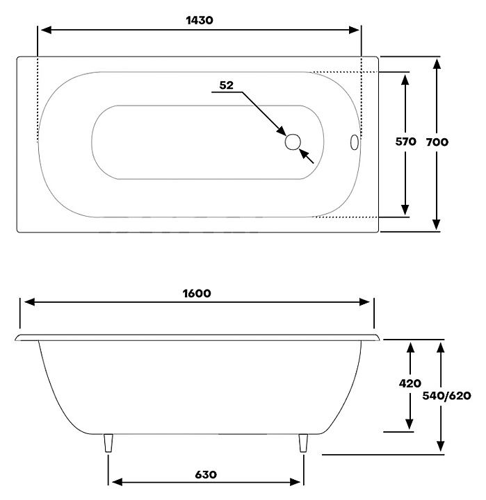 Ванна BYON B13 160x70x42 см, чугун