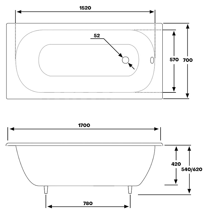 Ванна BYON B13 170x70x42 см, чугун