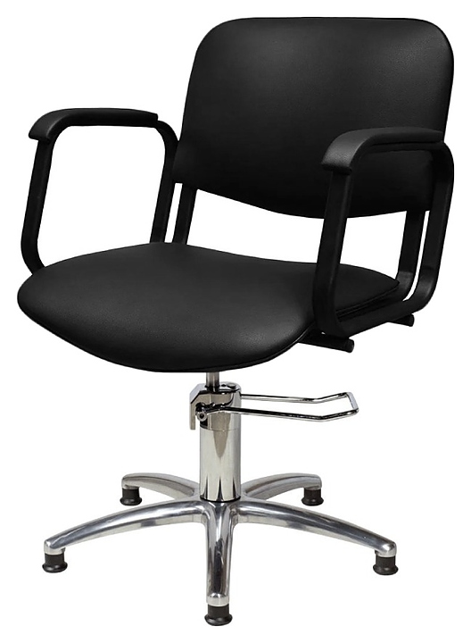 Универсальное парикмахерское кресло Имидж Мастер КОНТАКТ ПЛЮС гидравлика используется в парикмахерских, барбершопах и салонах красоты для комфортного размещения клиента во время стрижки, окрашивания волос и других услуг, также подходит для домашнего и офисного интерьера. Модель оснащена удобными сиденьем и спинкой, подлокотниками с мягкими накладками, устойчивым основанием с пятилучьем на подпятниках и гидравлическим подъемником с рычагом регулировки. Обивка выполнена из качественной экокожи, пятилучье и подъемник – из хромированного металла, каркас и подлокотники – из покрытого антикорозийной краской металла и многослойной фанеры, наполнитель – эластичный пенополиуретан. Особенности: