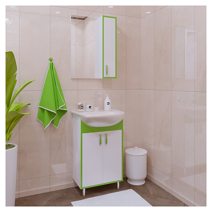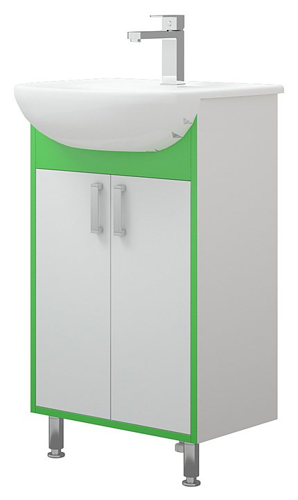 Тумба Corozo Спектр 50 SD-00000684 выполнена в современном, лаконичном стиле и отлично дополнит интерьер любой ванной комнаты. Модель оснащена 2 распашными фасад-дверцами, внутри которых находятся полки, где удобно разместить все необходимые личные принадлежности и элементы декора. Напольная конструкция обеспечивает легкий монтаж и не требует специального ремонта в помещении. Тумба может использоваться вместе с раковиной Уют 50. Особенности:
