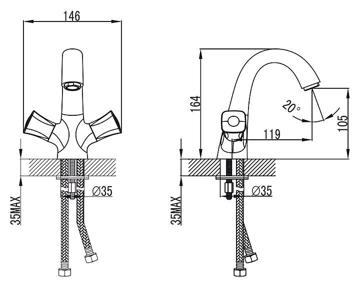 Смеситель Kaiser Topaz 17211 предназначен для использования в ванных помещениях для подачи горячей и холодной воды. Модель оснащена керамической кран-буксой для бесшумного смешивания холодной и горячей воды, а также аэратором для создания мягкой ровной струи без разбрызгивания. Изделие выполнено из высококачественной латуни, отличающейся прочностью, долговечностью и устойчивостью к перепадам температур. В комплект поставки входит аэратор и гибкая подводка. Особенности: