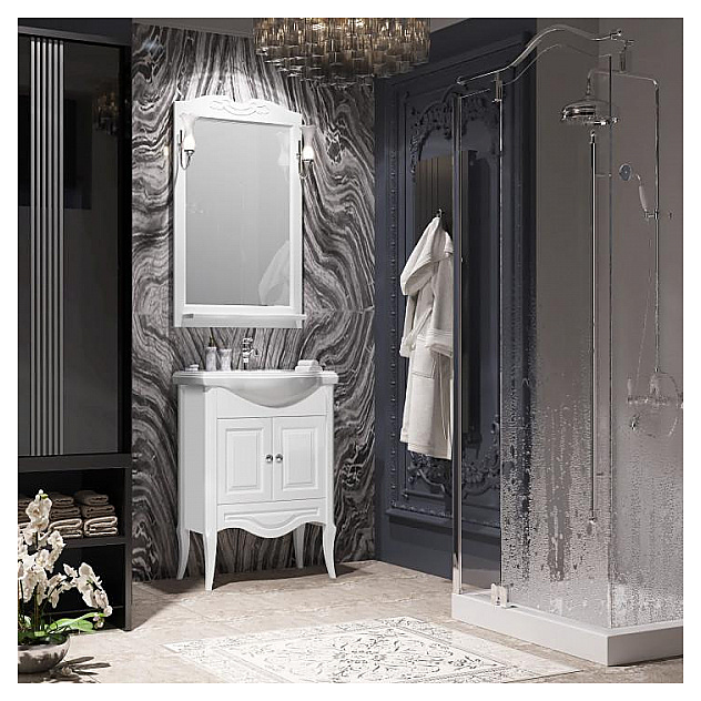 Гарнитур OPADIRIS Брунелла 65 выполнен в классическом стиле. Благодаря изящной отделке и классическим формам мебель станет украшением любой ванной комнаты. В комплект входит тумба под раковину, раковина KIROVIT Классик 650 003924, зеркало и комплект светильников Z0000006243. Тумба оснащена 2 ящиками и 2 распашными фасад-дверцами. Раковина имеет слив-перелив и одно отверстие для смесителя, расположенное по центру. Дополнительные характеристики: