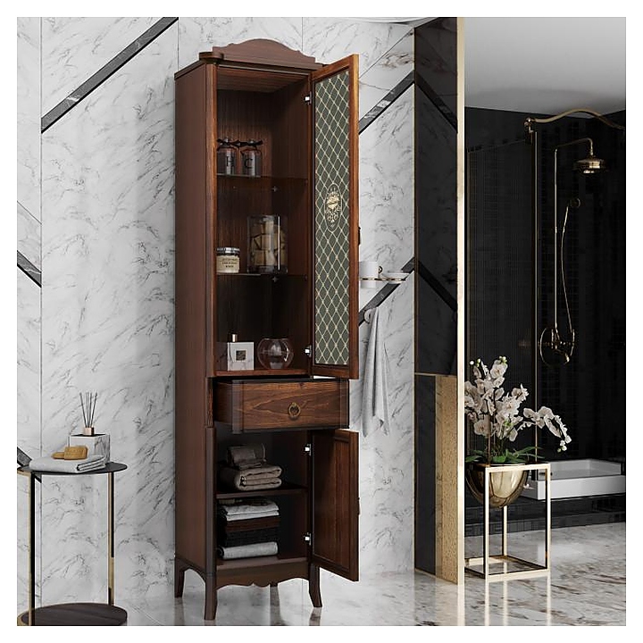 Шкаф-пенал OPADIRIS Виктория Z0000000230 выполнен в классическом, лаконичном стиле и отлично дополнит интерьер любой ванной комнаты. Модель оснащена 2 распашными фасад-дверцами, за которыми находятся стеклянные полки, где удобно хранить необходимые в ванной комнате принадлежности и элементами декора, и небольшим выдвижным ящиком в центральной части пенала. Напольная конструкция обеспечивает легкий монтаж и не требует специального ремонта в помещении. Корпус изделия выполнен из массива бука, боковины - из ЛДСП. Пенал может использоваться в составе гарнитура для ванной комнаты Виктория 90, светлый орех с черной патиной. Внимание! Информация о товарах, размещенная на сайте, не является публичной офертой, определяемой положениями Части 2 Статьи 437 Гражданского кодекса Российской Федерации. Производители вправе вносить изменения в технические характеристики, внешний вид и комплектацию товаров без предварительного уведомления. Уточняйте характеристики у наших менеджеров перед оформлением заказа. |