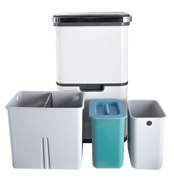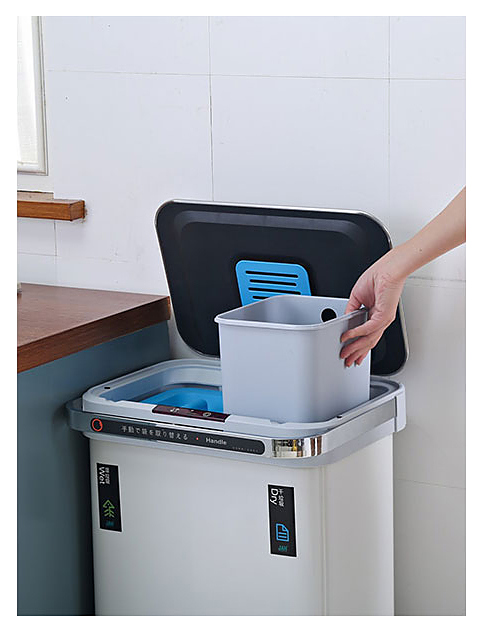 Сенсорное ведро для мусора Foodatlas JAH-8888 используется на предприятиях общественного питания и торговли, а также в частных домах, квартирах, отелях и офисах для раздельного сбора и кратковременного хранения мусора и пищевых отходов. Модель прямоугольной формы оснащена 4 отсеками, расположенными в 2 яруса, 3 внутренними емкостями с фиксаторами пакетов и крышкой с сенсорной панелью управления. Корпус выполнен из нержавеющей стали, верхняя крышка - из ABS пластика, внутренние емкости - из PP пластика. Особенности: