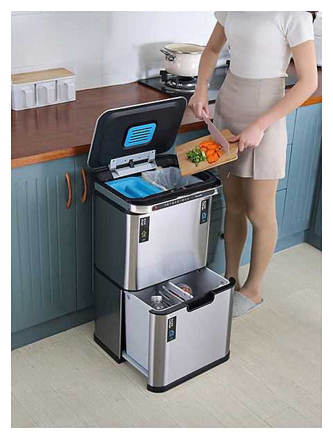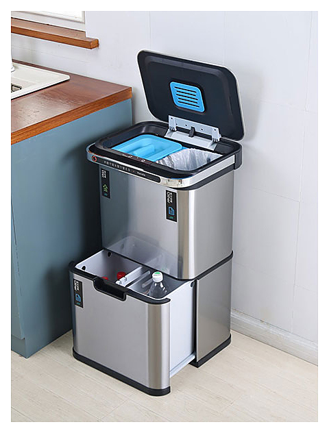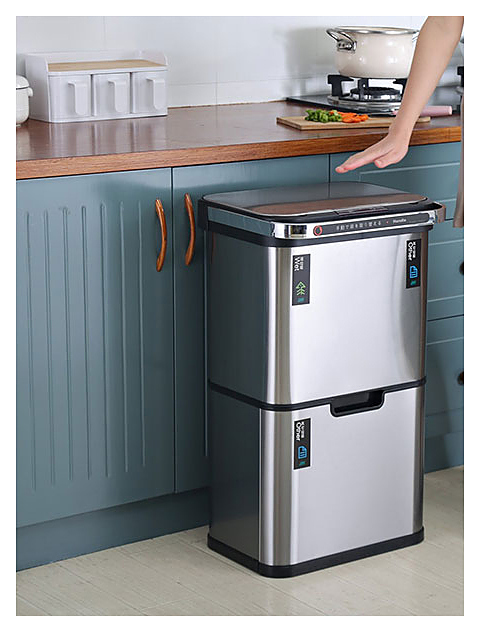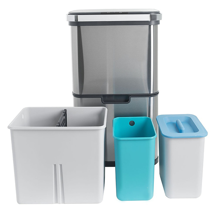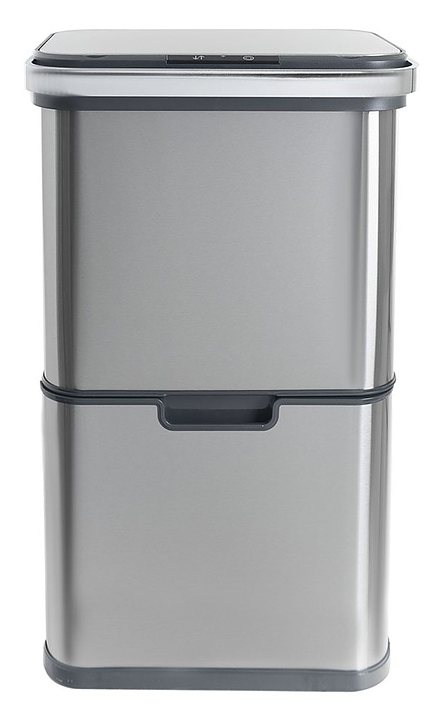 Сенсорное ведро для мусора Foodatlas JAH-8888 используется на предприятиях общественного питания и торговли, а также в частных домах, квартирах, отелях и офисах для раздельного сбора и кратковременного хранения мусора и пищевых отходов. Модель прямоугольной формы оснащена 4 отсеками, расположенными в 2 яруса, 3 внутренними емкостями с фиксаторами пакетов и крышкой с сенсорной панелью управления. Корпус выполнен из нержавеющей стали, верхняя крышка - из ABS пластика, внутренние емкости - из PP пластика. Особенности:
