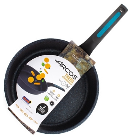 Сковорода Arcos Thera 718500 предназначена для профессионального использования на предприятиях общественного питания и торговли, в частных домах и квартирах. Изделие выполнено из литого алюминия с отличной теплопроводностью и антипригарным покрытием, фиксированная ручка - из пластика и силикона. Дополнительные характеристики: