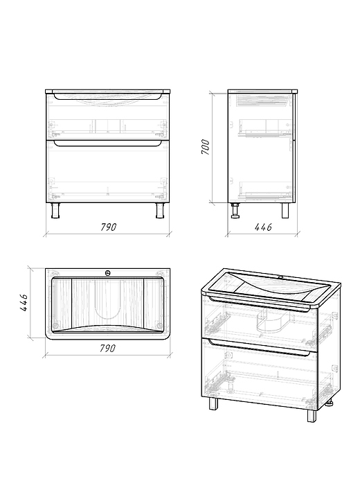 Тумба под раковину Grossman Адель 80 см дополнит интерьер ванной комнаты. Модель оснащена 2 выдвижными ящиками с плавным закрыванием, интегрированными ручками и ножками, защищающими конструкцию от воздействия влаги в случае намокания пола. Изделие выполнено из МДФ и покрыто глянцевой краской, устойчивой к перепадам температур и высокой влажности. Тумба используется вместе с раковиной Адель 80 см. В комплект поставки входят ножки.