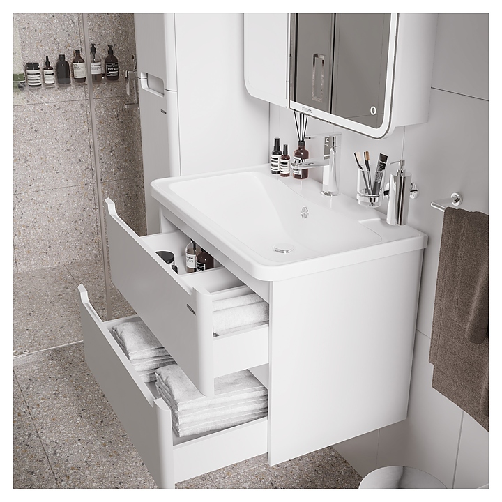 Тумба под раковину Grossman Адель 70 см дополнит интерьер ванной комнаты. Благодаря подвесной конструкции модель не занимает много места, что экономит пространство в ванной комнате и облегчает уборку. Тумба оснащена 2 выдвижными ящиками с плавным закрыванием и интегрированными ручками. Изделие выполнено из МДФ и покрыто глянцевой краской, устойчивой к перепадам температур и высокой влажности. Тумба используется вместе с раковиной Адель 70 см.