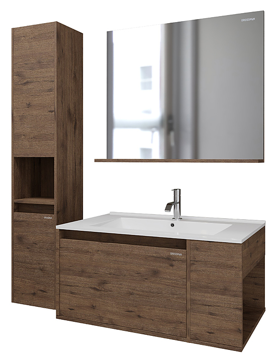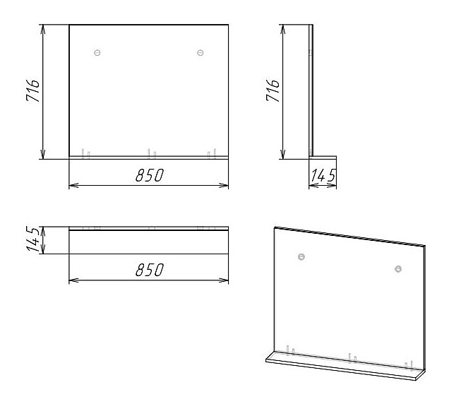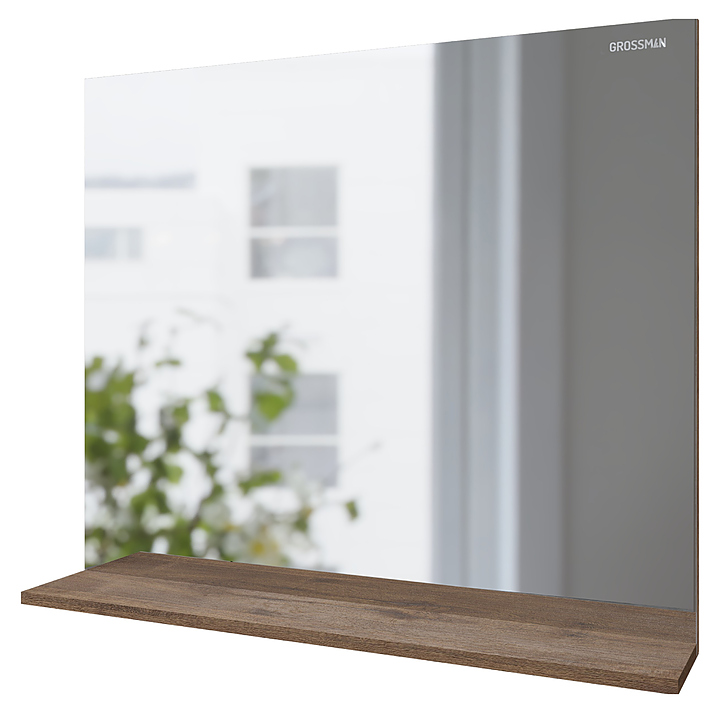 Зеркало Grossman Тенза 85 см дополнит интерьер ванной комнаты. Благодаря подвесной конструкции модель не занимает много места, что позволяет экономить пространство, а также облегчает уборку. Зеркало оснащено полкой. Изделие выполнено из влагостойкой ЛДСП, устойчивой к перепадам температур и высокой влажности. В комплект поставки входят подвесы для крепления. Дополнительные характеристики: