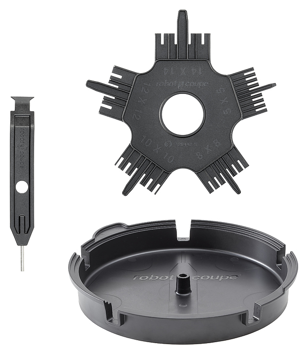 Кухонный процессор Robot Coupe R502G используется на предприятиях общественного питания и торговли для всех видов нарезки, замешивания и измельчения продуктов питания. Насадка-овощерезка оснащена 2 воронками: полукруглой и цилиндрической. Аппарат представляет собой куттер и овощерезку в одном виде. Корпус мотора выполнен из металла, чаша и лезвия - из нержавеющей стали. В комплект поставки входит аксессуар для безопасной и бережной очистки решеток D-Clean Kit и толкатель Exactitube. Диски в комплект поставки не входят и заказываются отдельно. Особенности: