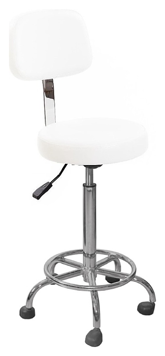 Стул мастера Имидж Мастер ПРИЗМА высокий со спинкой используется в косметологических центрах, салонах красоты, маникюрных студиях и массажных кабинетах для расположения специалиста при проведении различных процедур, а также подходит для домашнего бытового интерьера. Модель оснащена удобными мягкими сиденьем и спинкой, устойчивым основанием с пятилучьем на колесах, удобной кольцеобразной опорой для ног и рычагом регулировки. Обивка выполнена из качественной экокожи, каркас – из металла и многослойной фанеры, пятилучье и опора – из хромированного металла, колеса – из прочного пластика, наполнитель – эластичный пенополиуретан. Особенности: