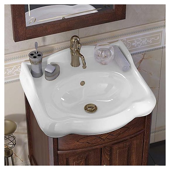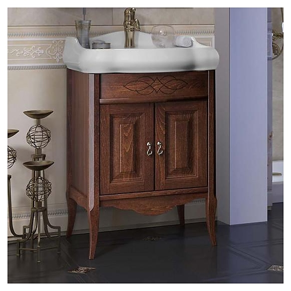 Тумба напольная под раковину OPADIRIS Лоренцо 60 Z0000011066 выполнена в классическом стиле. Модель оснащена 2 распашными фасад-дверцами, внутри которых находится полка, где удобно хранить необходимые в ванной комнате личные принадлежности, аксессуары и элементы декора, раковина имеет слив-перелив и одно отверстие для смесителя, расположенное по центру. Напольная конструкция обеспечивает легкий монтаж и не требует специального ремонта в помещении. Благодаря изящной отделке и классическим формам мебель станет украшением любой ванной комнаты. Корпус изделия выполнен из массива бука, материал боковых сторон - ЛДСП. Тумба приобретается только в комплекте с раковиной Cerastyle Виктория 60 030200-u-01. Раковина со смесителем в комплект поставки не входят и приобретаются отдельно. Тумба является частью гарнитура для ванной комнаты Лоренцо 60, светлый орех. Внимание! На фото тумба с раковиной и смесителем, которые в комплект поставки не входят и приобретаются отдельно.