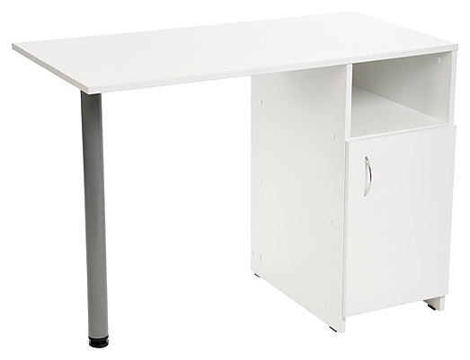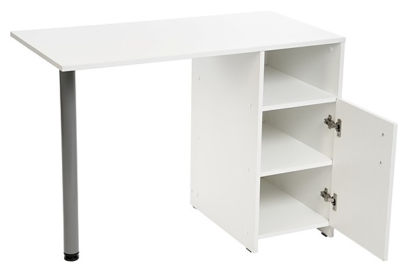 Маникюрный стол Имидж Мастер ОПТИМУМ предназначен для обустройства рабочего пространства мастера маникюра в косметологических центрах, салонах красоты и домашних студиях ногтевого сервиса. Модель оснащена прямоугольной столешницей, цилиндрической опорой на подпятнике, встроенной тумбой с 1 открытой полкой и запираемым распашной дверцей отделением с 2 полками для хранения оборудования, аксессуаров и расходных материалов. Столешница, фасады и полки изготовлены из высококачественной ламинированной древесно-стружечной плиты с облицовкой влагостойкой пленкой, опора – из металла. Особенности: