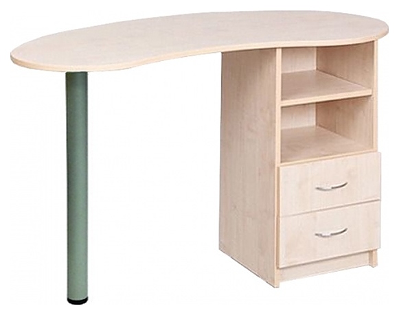 Маникюрный стол Имидж Мастер КАТРИН предназначен для обустройства рабочего пространства мастера маникюра в косметологических центрах, салонах красоты и домашних студиях ногтевого сервиса. Модель оснащена столешницей в форме капли, цилиндрической опорой на подпятнике, встроенной тумбой с 2 открытыми полками и 2 выдвижными ящиками для хранения оборудования, аксессуаров и расходных материалов. Столешница и тумба изготовлены из высококачественной ламинированной древесно-стружечной плиты с облицовкой влагостойкой пленкой, опора – из металла. Особенности: