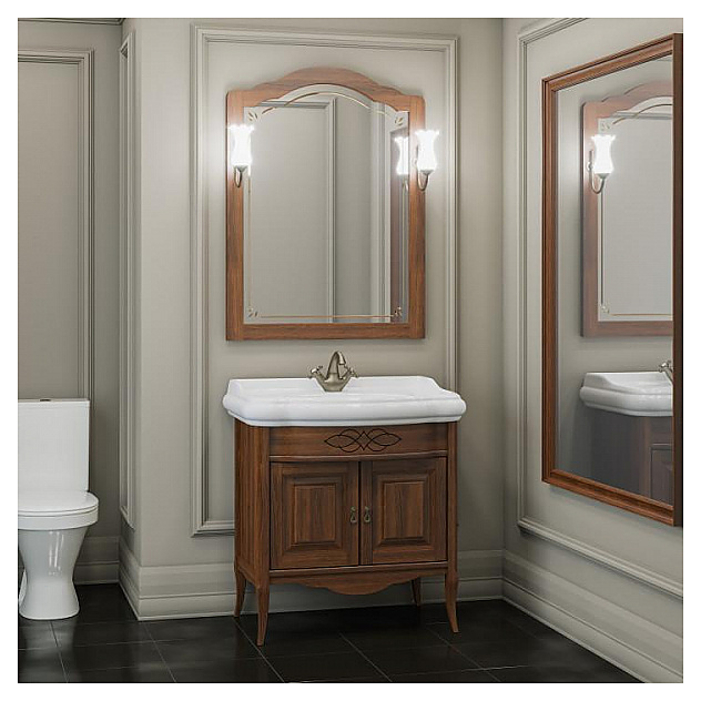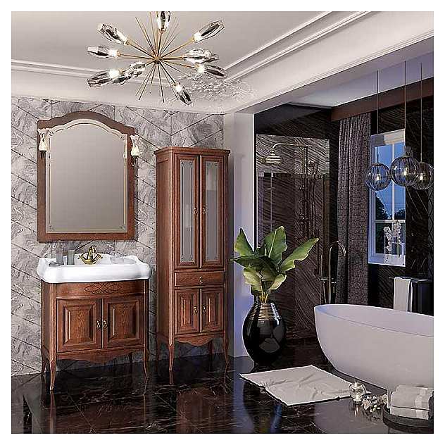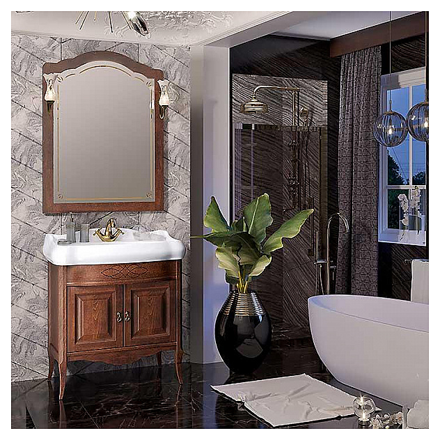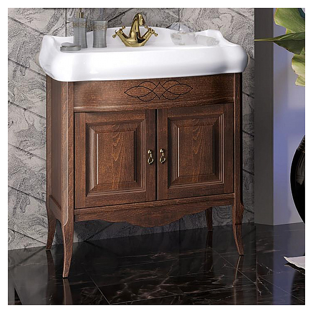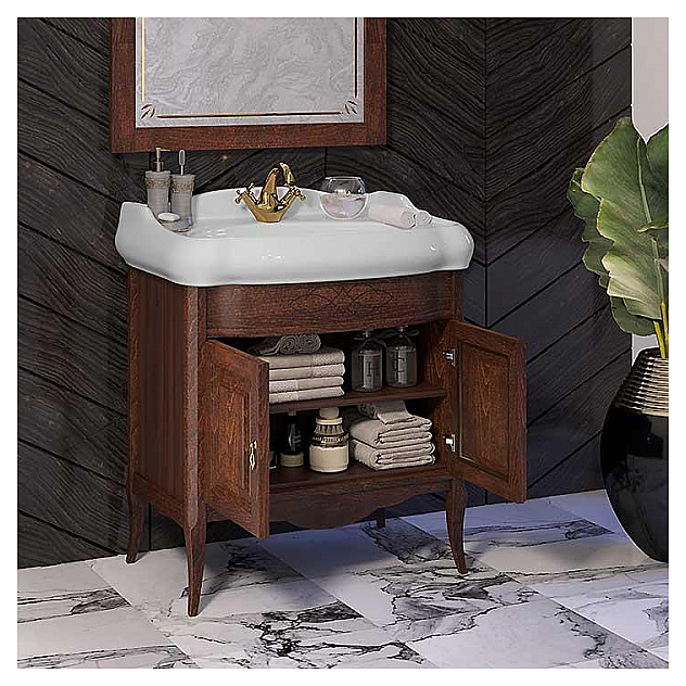 Гарнитур OPADIRIS Лоренцо 80 выполнен в классическом стиле. Тумба оснащена 2 распашными фасад-дверцами, раковина имеет слив-перелив и одно отверстие для смесителя, расположенное по центру. Напольная конструкция обеспечивает легкий монтаж и не требует специального ремонта в помещении. Благодаря изящной отделке и классическим формам мебель станет украшением любой ванной комнаты. Корпус изделия выполнен из массива бука, боковины - из ЛДСП со шпоном. Комплектация:
