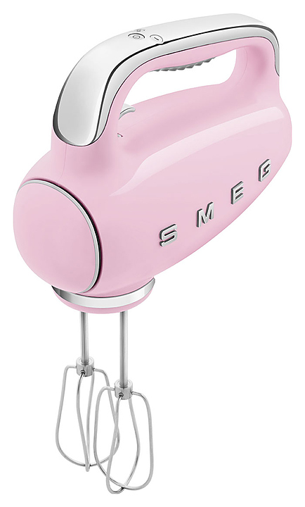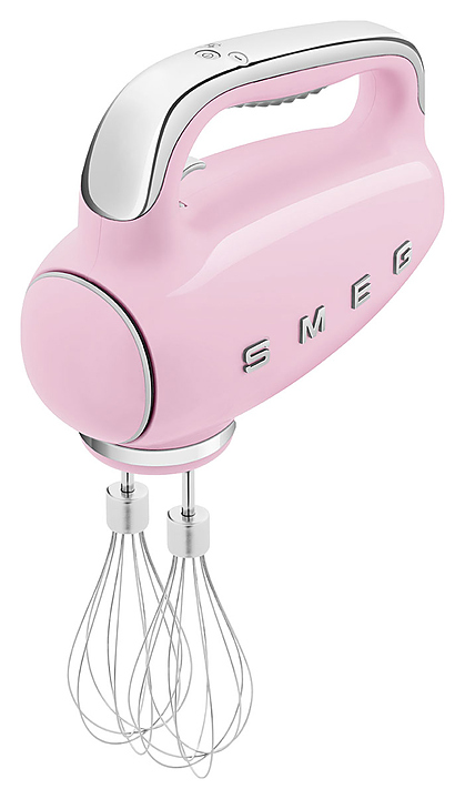 Миксер Smeg HMF01PKEU предназначен для взбивания кремов, муссов, замешивания теста, а также для приготовления пюре, соусов и коктейлей в частных домах и квартирах. Модель выполнена в стиле 50-х годов. Корпус изготовлен из ABS-пластика с глянцевой отделкой, верхняя часть - из пластика, нижняя часть - из Soft touch пластика. Комплектация: