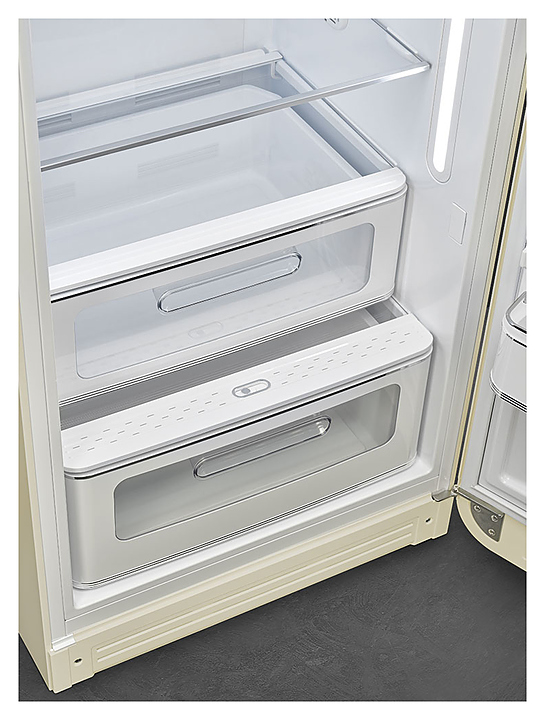 Холодильник Smeg FAB28RCR5 предназначен для охлаждения и кратковременного хранения скоропортящихся продуктов и напитков в частных домах, квартирах, отелях и офисах. Модель выполнена в стиле 50-х годов. Боковины выполнены из стали, дверцы - из термоформируемого полимера, полки и ящик для овощей - из закаленного стекла. Особенности: