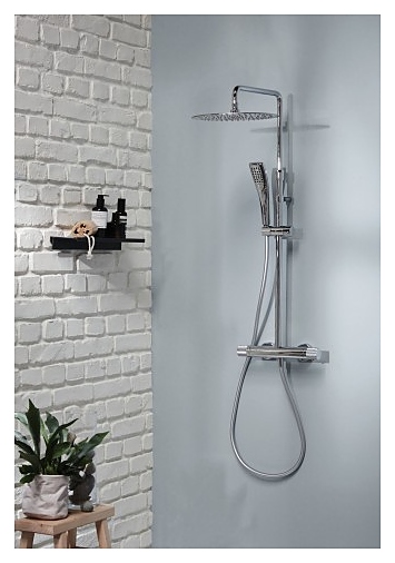 Душевая стойка Jacob Delafon RIVOLI E26587-CP используется в ванных комнатах. Модель оснащена продолговатой лейкой и ультратонким верхним душем. Особенности: