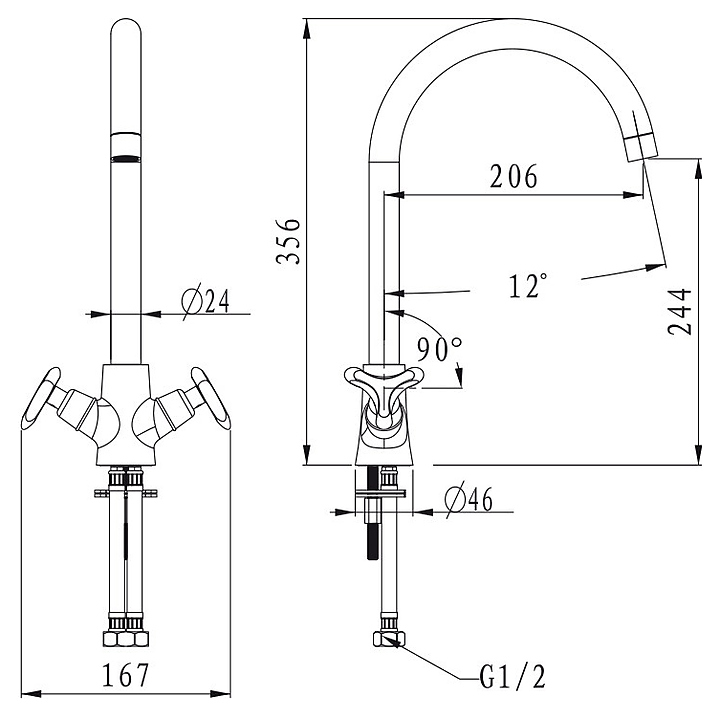 Смеситель Kaiser Trio 57033 предназначен для использования в кухонных помещениях для подачи горячей и холодной воды. Модель оснащена керамической кран-буксой для бесшумного смешивания холодной и горячей воды, а также аэратором для создания мягкой ровной струи без разбрызгивания. Изделие выполнено из высококачественной латуни, отличающейся прочностью, долговечностью и устойчивостью к перепадам температур. В комплект поставки входят аэратор и гибкая подводка. Особенности: