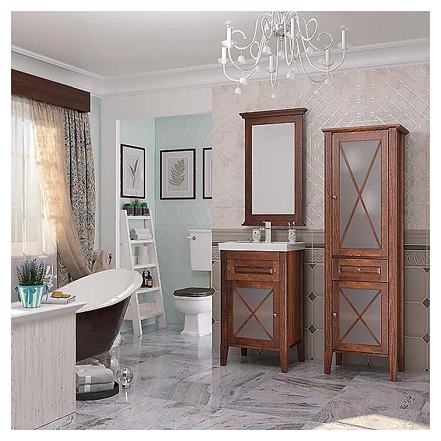 Гарнитур OPADIRIS Палермо 50 выполнен в классическом стиле. Тумба оснащена распашной фасад-дверцей и небольшим выдвижным ящиком в верхней части изделия, раковина имеет слив-перелив и одно отверстие для смесителя, расположенное по центру. Напольная конструкция обеспечивает легкий монтаж и не требует специального ремонта в помещении. Благодаря изящной отделке и классическим формам мебель станет украшением любой ванной комнаты. Корпус изделия выполнен из массива бука, материал боковых сторон - массив буква и ДСП со шпоном, раковина - из литьевого мрамора. Комплектация: